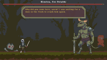 Our game tells about the life of a skeleton in another project in the dark fantasy genre. You will have to make decisions for him, be he strong-willed or modest.